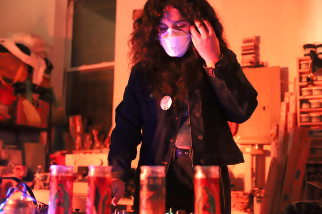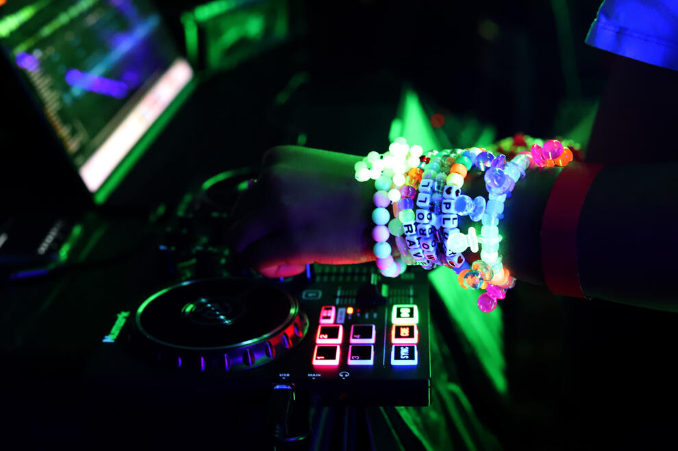 DJ MiMiDREAM shows off her rave ‘kandi’ as she showcases her set at Genre Fuck’s Happy Hour Tour on May 18, 2024. 'Kandi' are beaded bracelets that connect with other ravers to spread peace, love, unity, and respect.