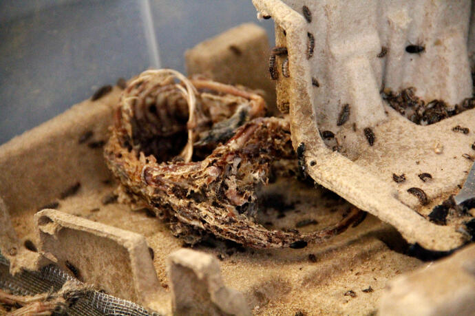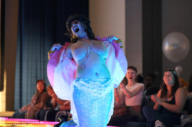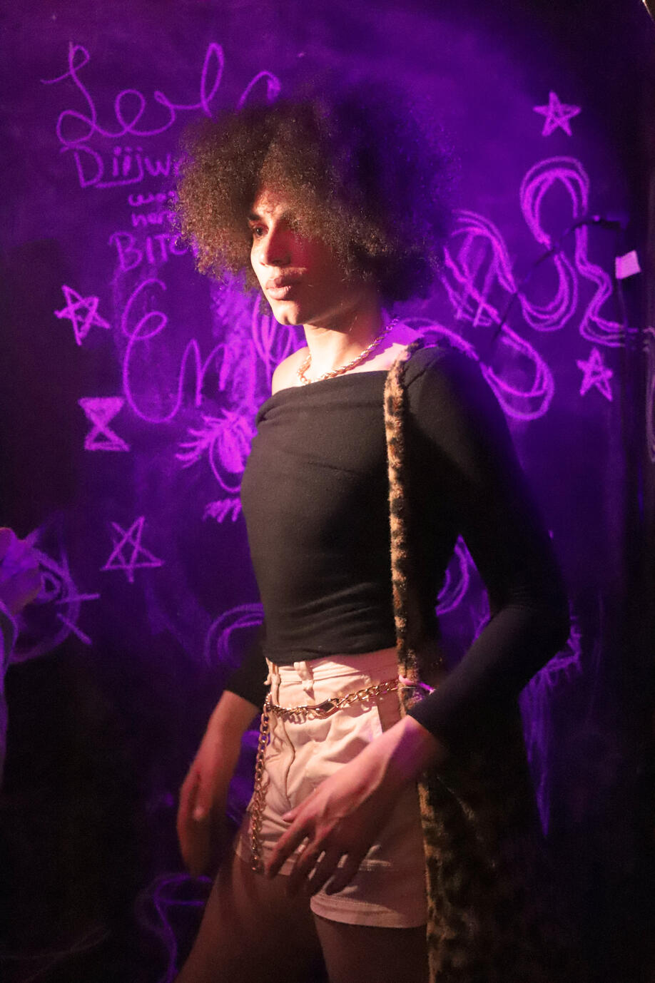 McGuigan Weatherspoon, a Chicago creative and student poses for a friend's camera at a rave at Space.01 on May 4, 2024. The rave was thrown by Nexus Groove Space, a collective DIY event space for locals working to liven up the party scene in Chicago and create a comforting environment for all. Weatherspoon is just one of the locals who participate in the scene, enjoying all it embarks.